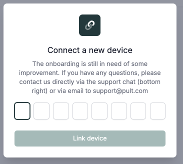 On your computer: Sign in to the Pult dashboard and navigate to Kiosks in the Settings section. Click on Connect new device