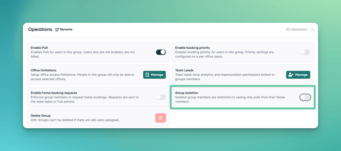 We understand that your team's booking data can be sensitive, and we're committed to providing you with the tools you need to maintain privacy. That's where our Group Isolation feature comes in!