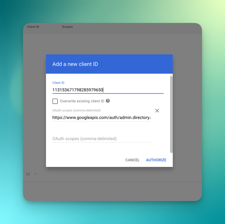 Note: It usually takes a few minutes for impersonation access to be granted after the client ID was added, but in some cases, it might take up to 24 hours to propagate to all users of your Google Account.