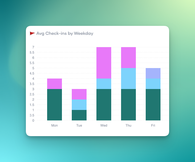 Identify which days see the highest and lowest office attendance, allowing for targeted adjustments to improve engagement and utilization.