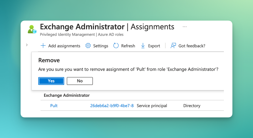 26deb6a2) and click Remove.Follow up by confirming the removal. The syncing of meeting rooms is disabled and no longer active if PULT is no longer present in the list.
