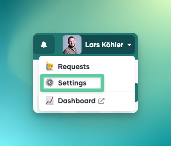 You can access your personal settings by clicking on your profile picture in the upper right corner: