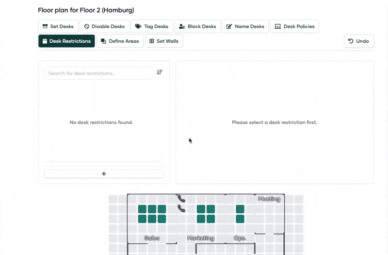 Wenn Sie Schreibtische haben, die für einen bestimmten Zeitraum nicht verfügbar sind, können Sie diese einschränken, indem Sie die folgenden Schritte befolgen: