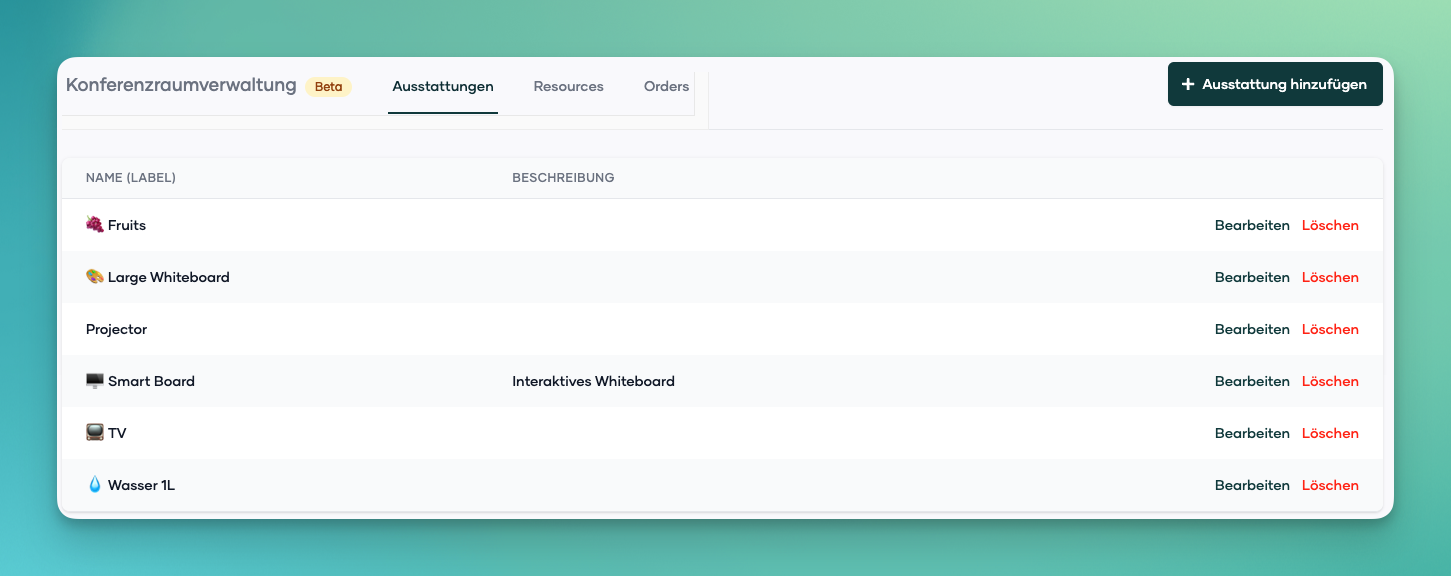 Durch die übersichtliche Auflistung der verfügbaren Ausstattungen können die Nutzer schnell die Räume finden, die ihren Bedürfnissen am besten entsprechen. Dadurch wird Verwirrung und Zeitverschwendung bei der Suche nach Räumen mit bestimmten Ausstattungsmerkmalen vermieden, was zu produktiveren Meetings führt.